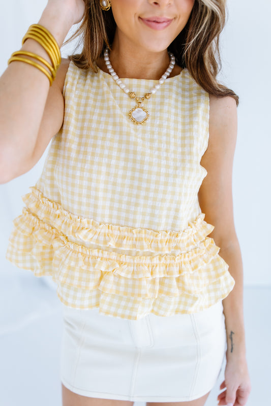 SLEEVELESS GINGHAM TANK TOP