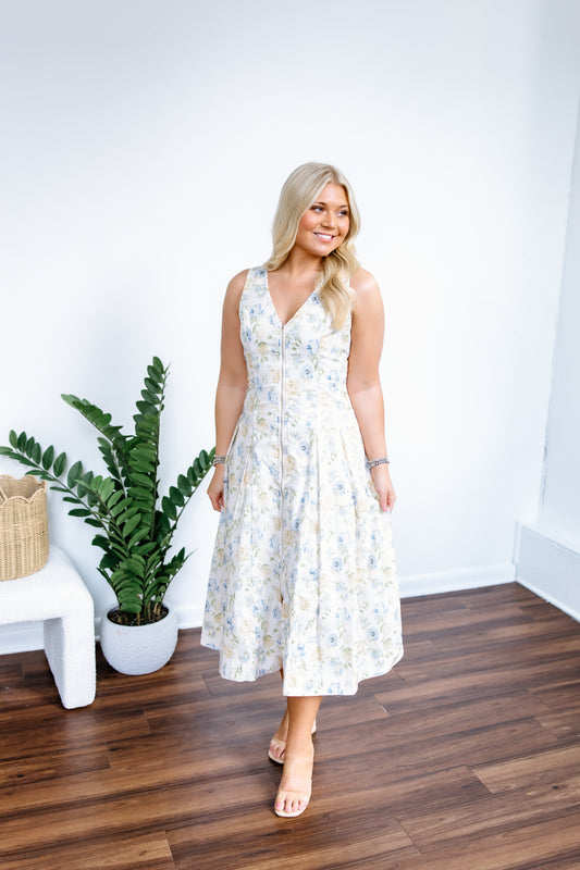 FLORAL MESH MIDI DRESS