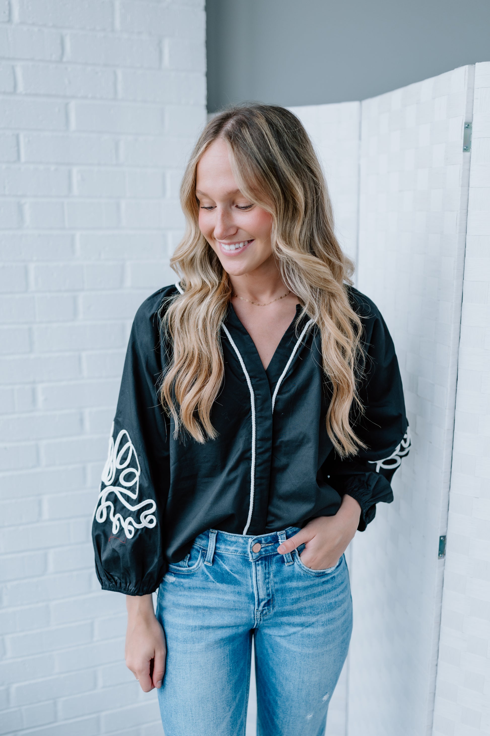 BOLD EMBROIDERY PUFF SLEEVE BLOUSE