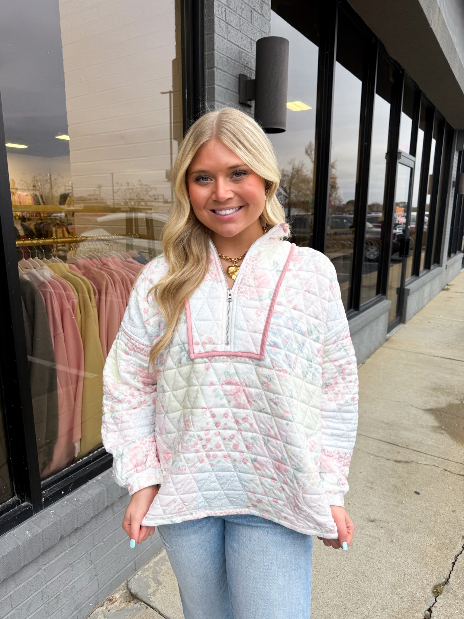 FLORAL TEXTURED QUARTERZIP
