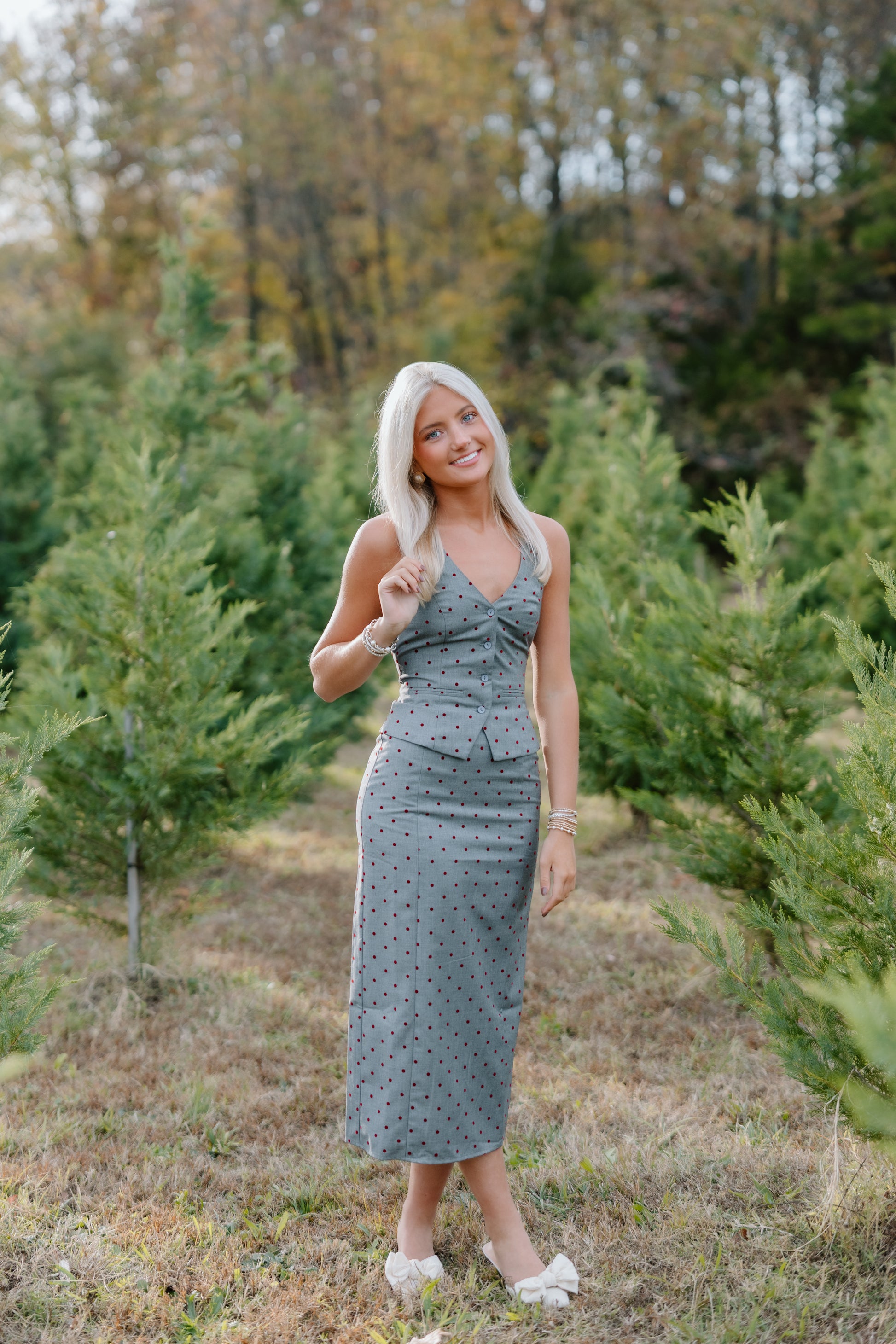 HOLIDAY POLKA DOT HALTER NECK SET