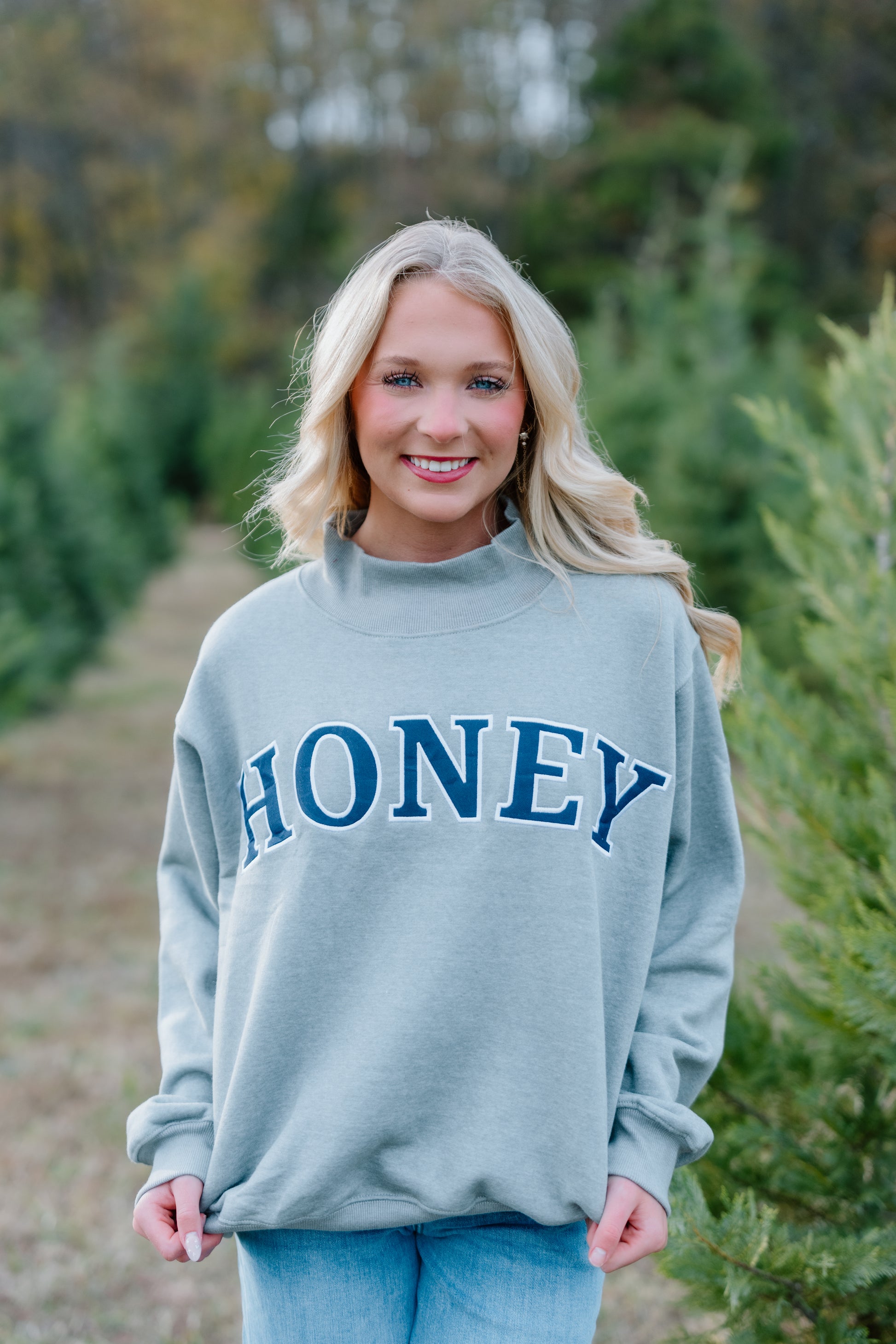 HONEY HEATHER GREY AND NAVY MOCK NECK
