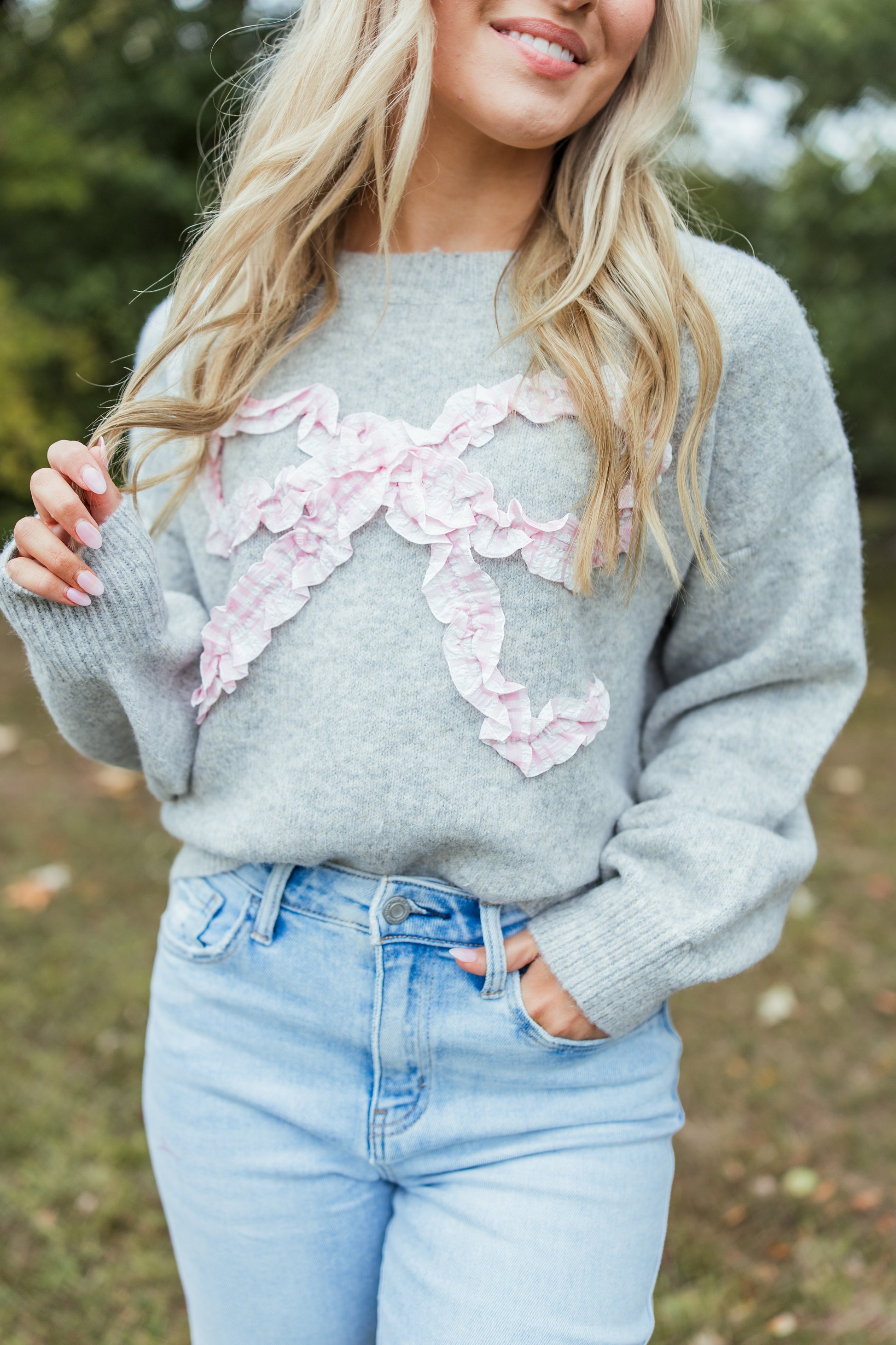 PLAID RIBBON SWEATER TOP