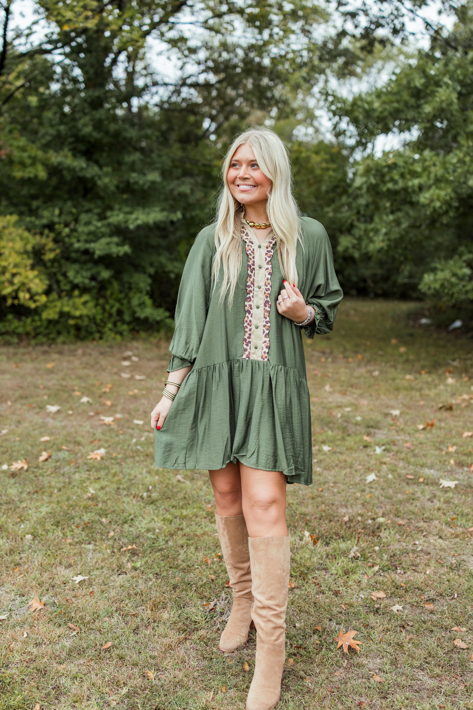 SO PERFECT LEOPARD TRIM DRESS